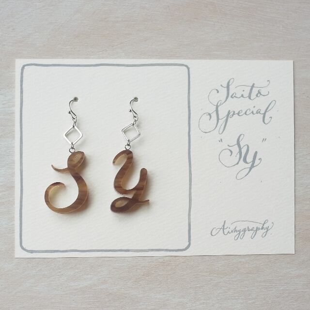 S様専用のアルファベットピアスです。 落ち着いた色合いのマーブルの板を2枚貼り合わせ シルバーの金具と合わせました。
